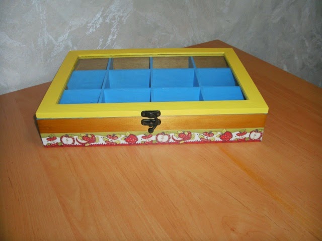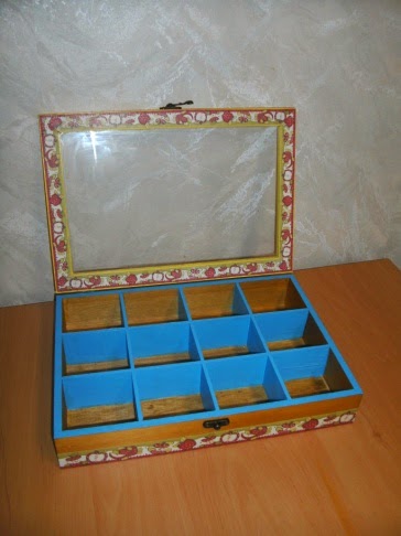 CAIXA DE CHÁ GRANDE COM 12 DIVISÓRIAS EM MADEIRA E TAMPA DE VIDRO