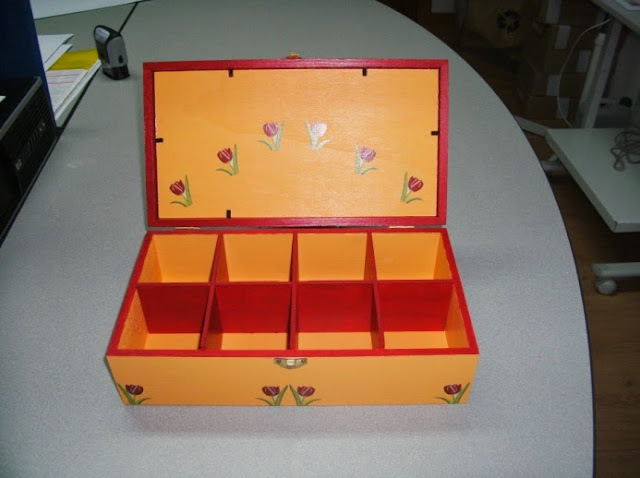 CAIXA DE CHÁ GRANDE COM 8 DIVISÓRIAS EM MADEIRA E TAMPA DE VIDRO #7