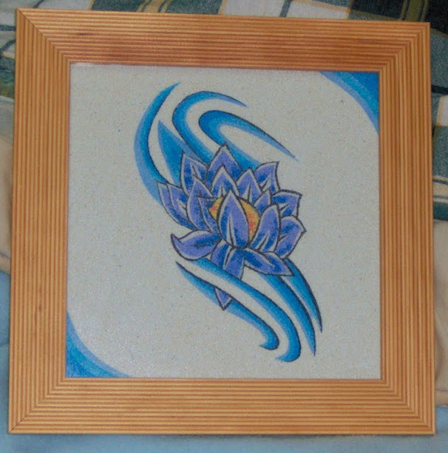 QUADRO COM MOLDURA DE MADEIRA COR NATURAL COM DECORAÇÃO DE AREIA