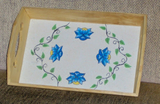 TABULEIRO RECTANGULAR DE MADEIRA COM DECORAÇÃO DE AREIA