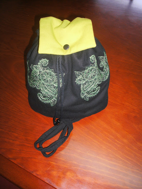 MOCHILA DE SENHORA EM SARJA COM BORDADO COM ALÇAS AJUSTÁVEIS