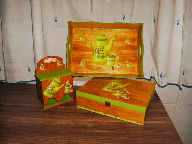 COMPOSTO POR CAIXA DE CHÁ COM 12 DIVISÓRIAS, TABULEIRO E AÇUCAREIRO (DISPENSADOR DE PACOTES)